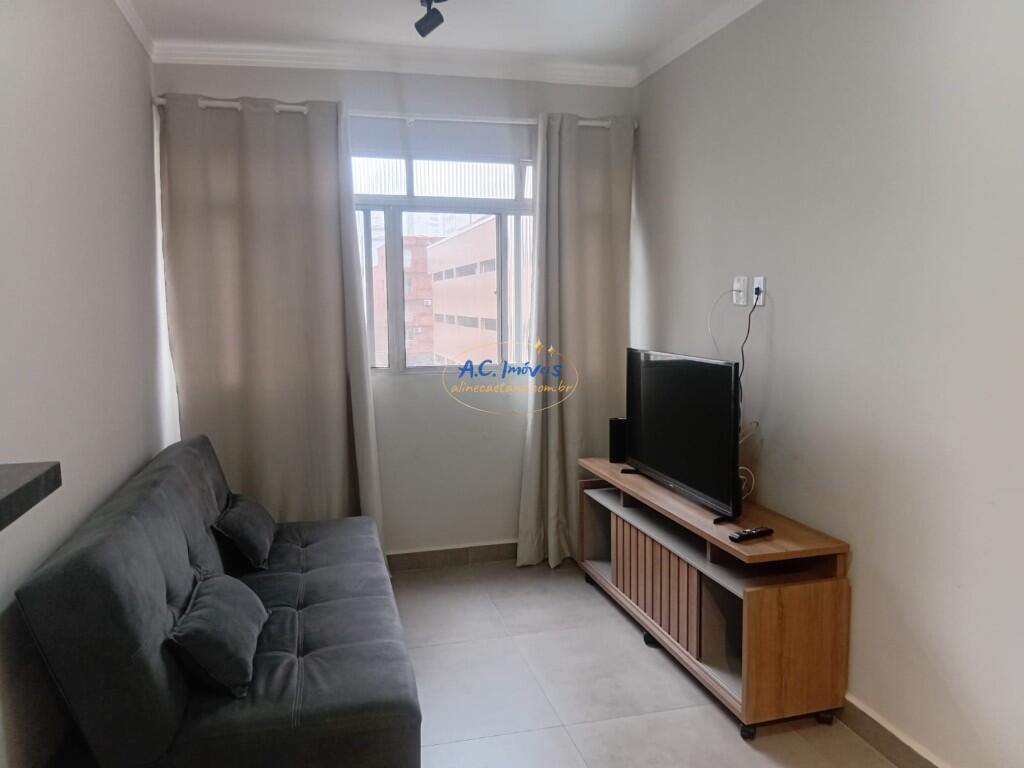 Com 1 dormitório, sala com sacada, vista mar, mobiliado, 1 vaga de garagem.