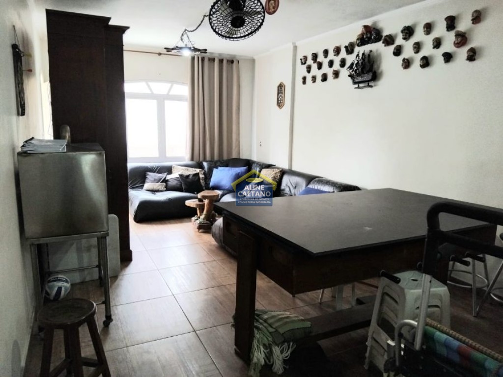 Com 1 dormitório, sala com varanda vista mar, semi mobiliado, 1 vaga de garagem.