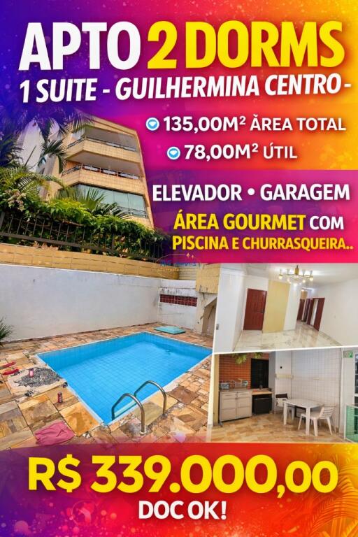 Maravilhoso Apartamento 2 dorms na Guilhermina - Lado Praia e Com Piscina!!