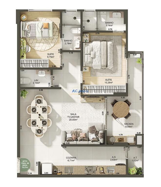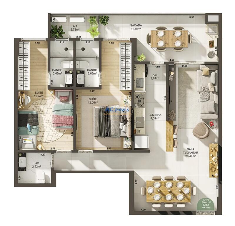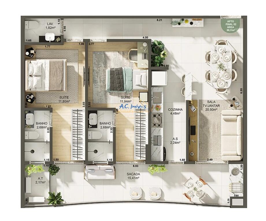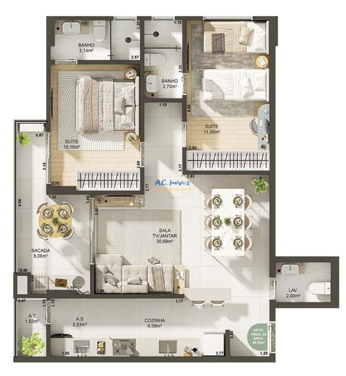 Área Útil80,00m²