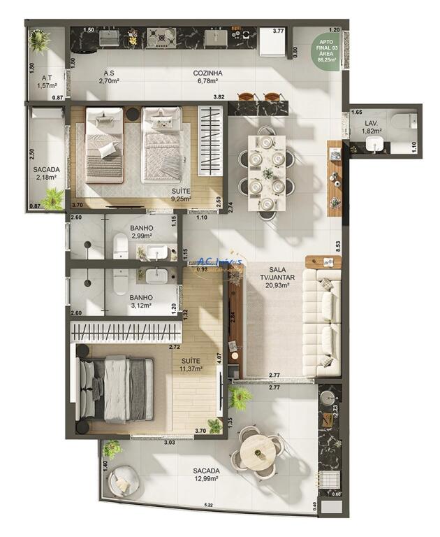 O acabamento em porcelanato traz elegância e facilidade na manutenção, enquanto a cozinha americana integrada à sacada gourmet com churrasqueira proporciona um ambiente ideal para momentos de lazer e convivência. Além disso, o apartamento conta com elevador social e acessibilidade, garantindo conforto e segurança para todas as idades.