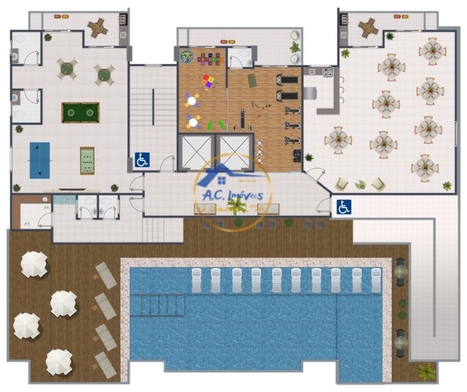 - Piscina adulto/infantil e deck molhado