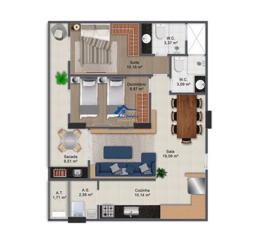 Área Total77,00 m²