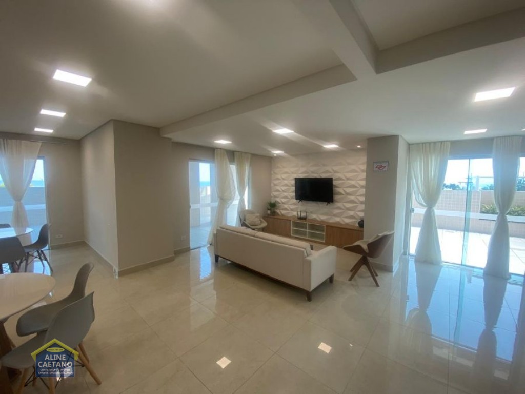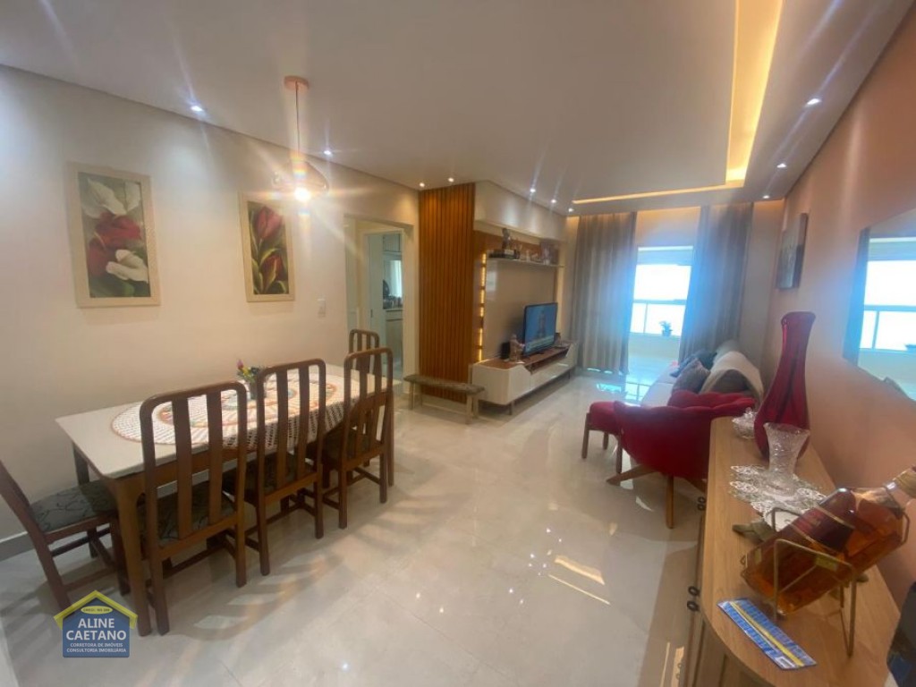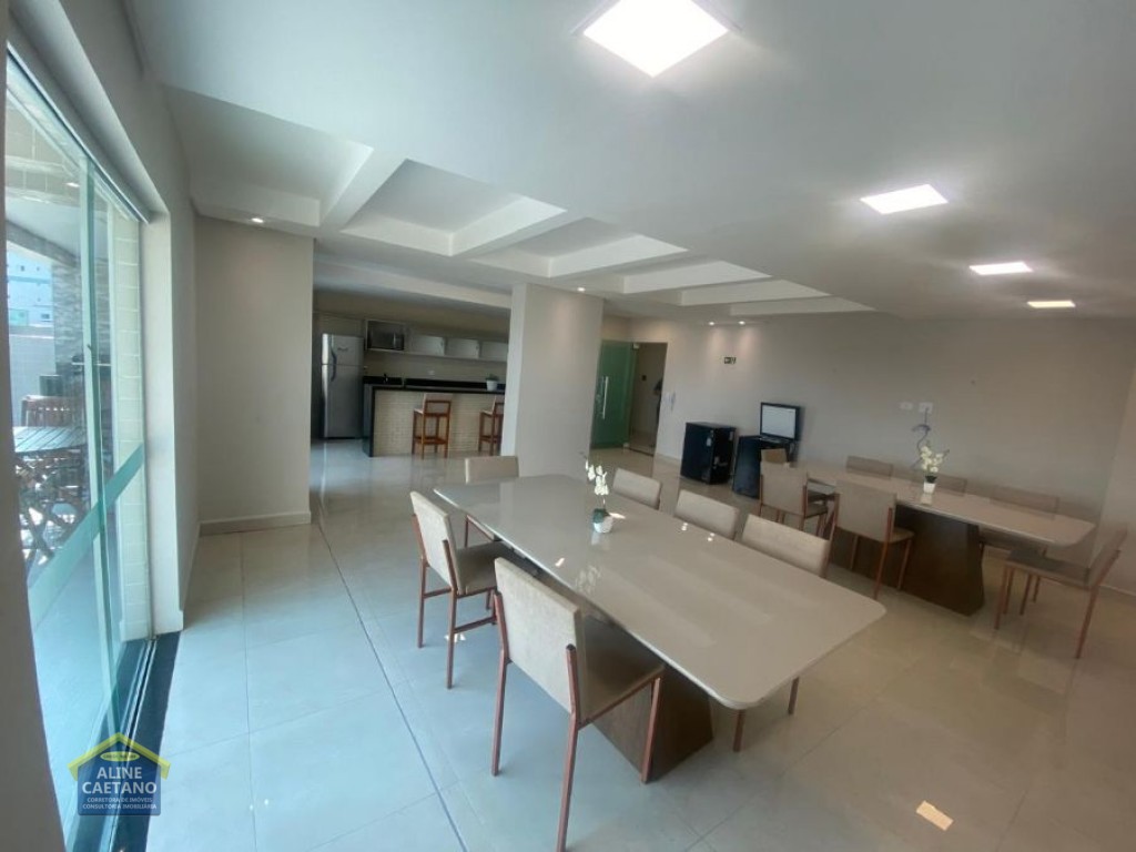 Apartamento em Praia Grande! Localizado no Bairro Mirim, contendo 111 m² área útil muito bem distribuídos por 03 dormitórios, sendo 01 suíte, sala com sacada, cozinha, área de serviço, 01 banheiro social, elevador privativo, 02 vagas de garagem e semi mobiliado. Aceita financiamento bancário! O empreendimento possui salão de jogos, salão de festas, salão de ginástica, espaço kids, piscina, quadra poliesportiva, portão eletrônico, elevador, churrasqueira, armários de praia e interfone