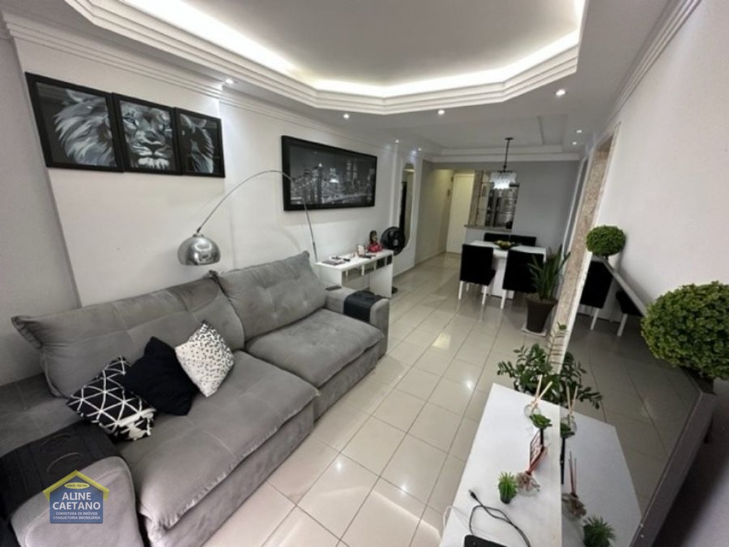 Com 2 dormitórios sendo 1 suíte, sala para 02 ambientes, sacada com vista mar e integrada com o quarto, banheiro social, cozinha, área de serviço e 01 vaga de garagem.