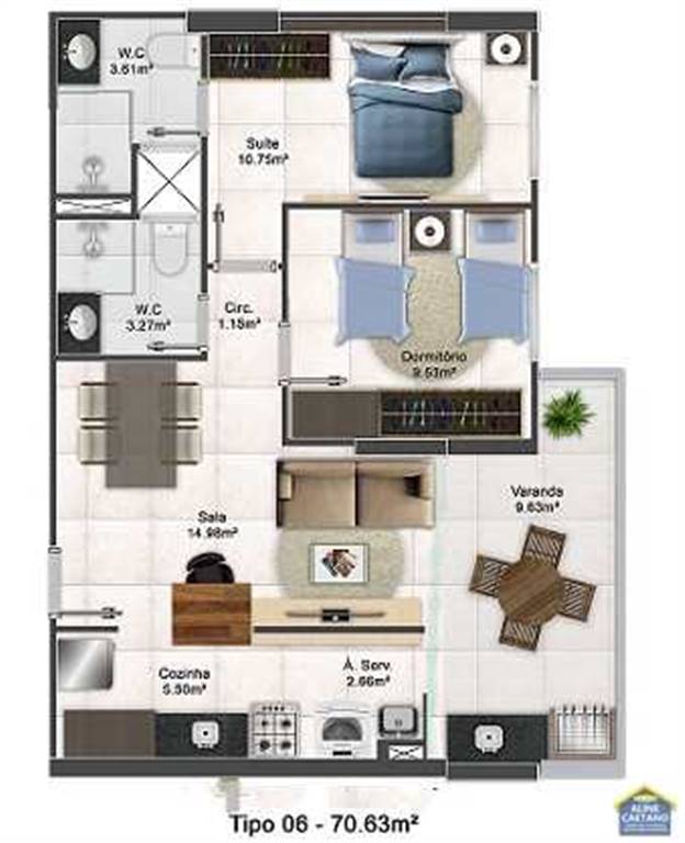 Apartamento EM PRAIA GRANDE, AVIAÇÃO - REF.: ACT9197 - R$ 1.045.000,00