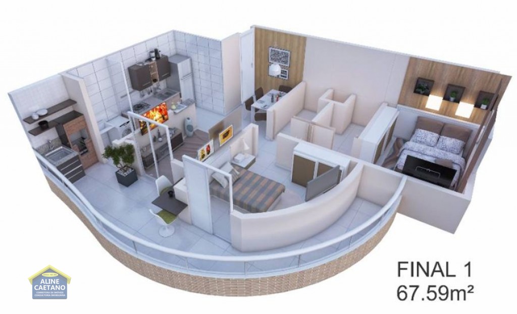 Com 2 dormitórios sendo 1 suíte, sala com varanda gourmet, 1 vaga de garagem.