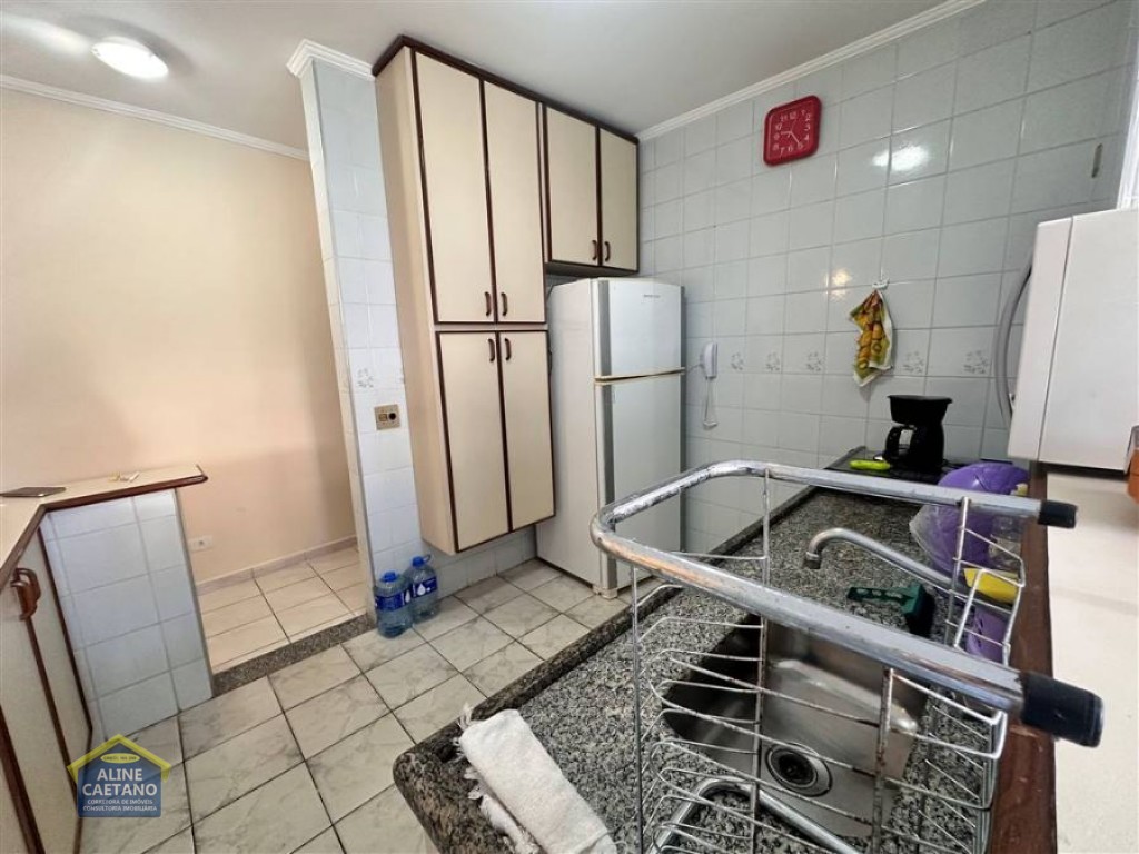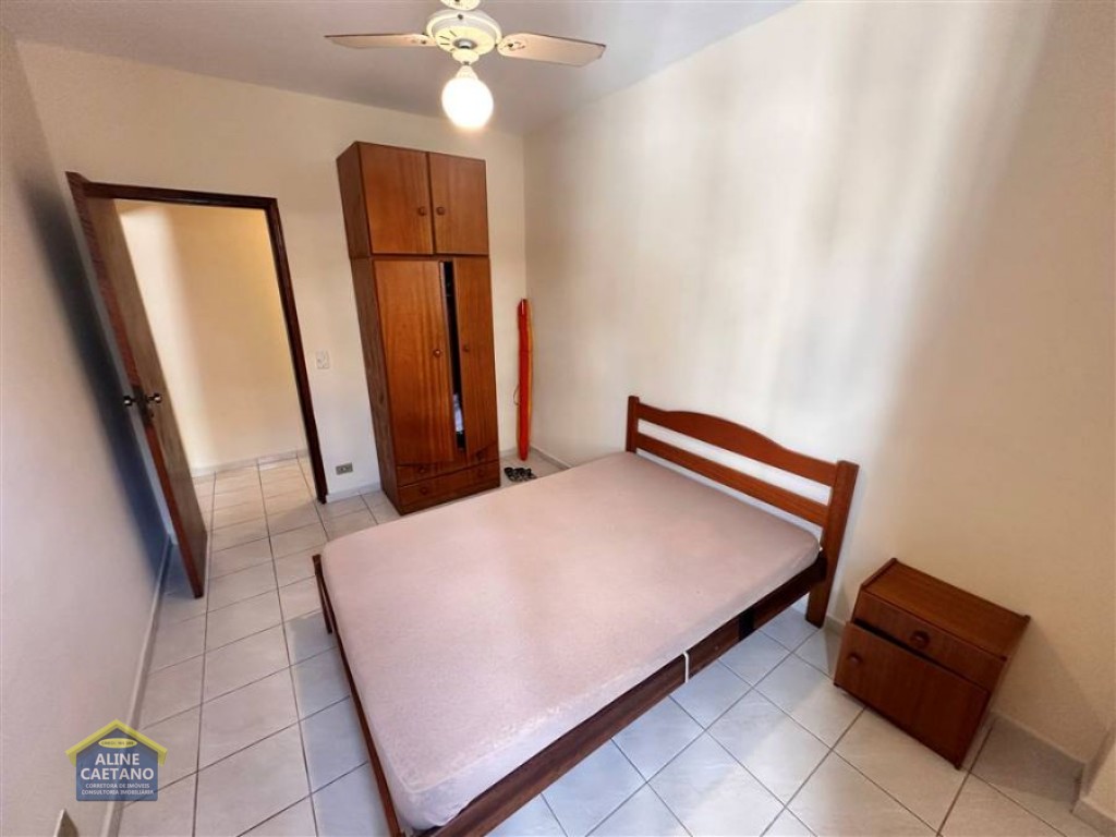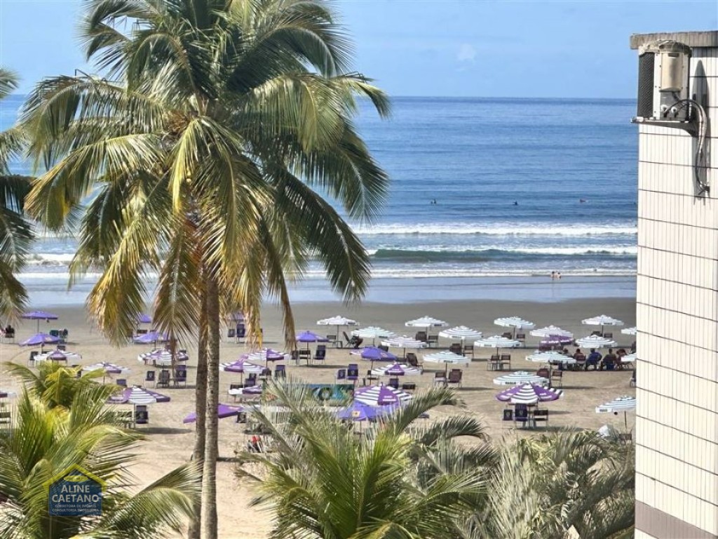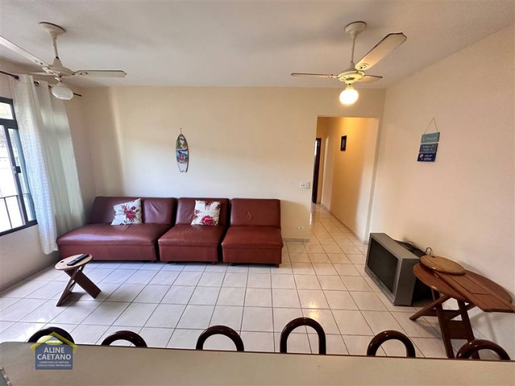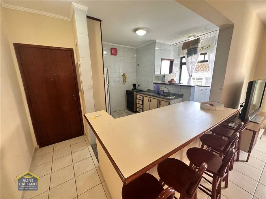 Apartamento mobiliado de 2 dormitórios, localizado em prédio frente ao mar, sala, cozinha americana, 2 WC sociais, área de serviço e 1 vaga de garagem coletiva.
