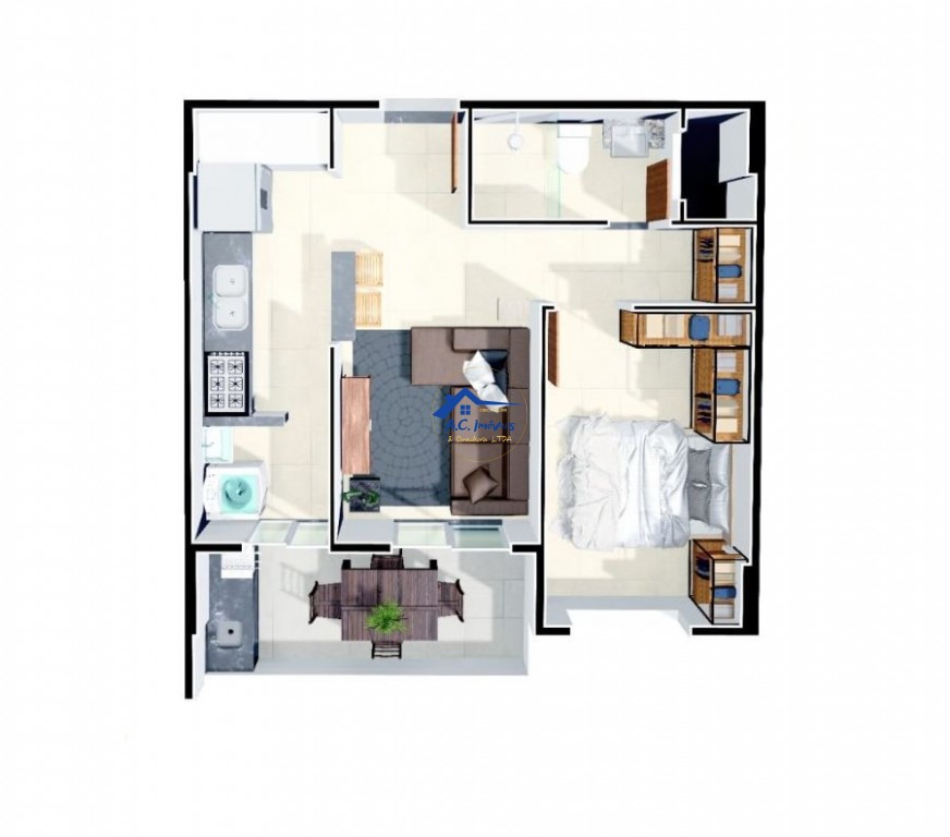 Com 46m² de área útil, este imóvel oferece um ambiente acolhedor e funcional, perfeito para solteiros, casais ou investidores.