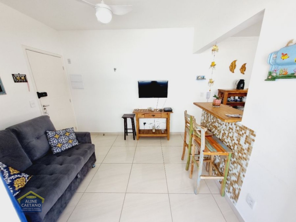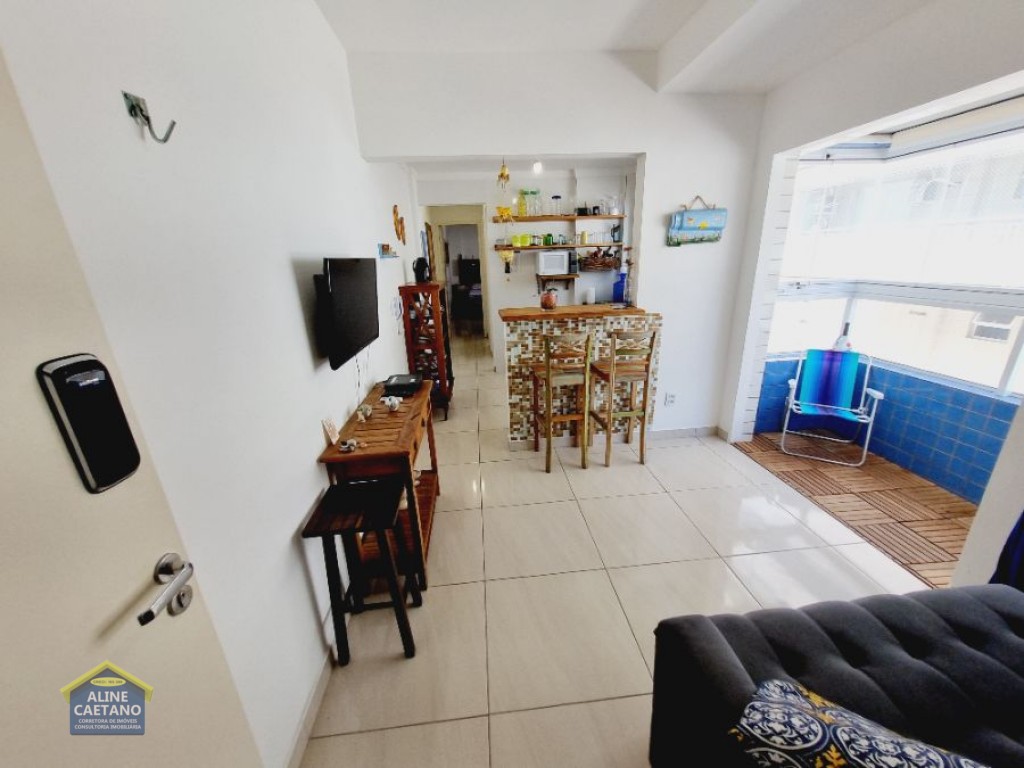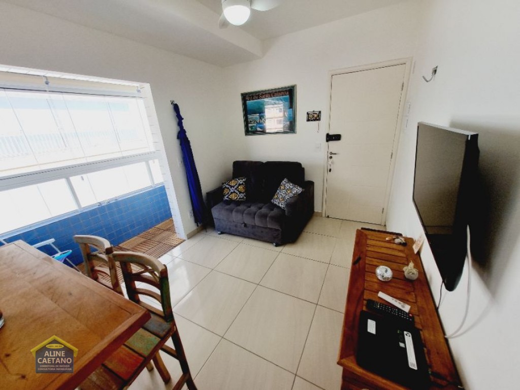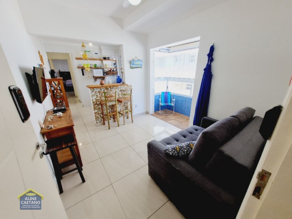 Com 1 dormitório com vista mar, sala com varanda, 1 vaga de garagem.