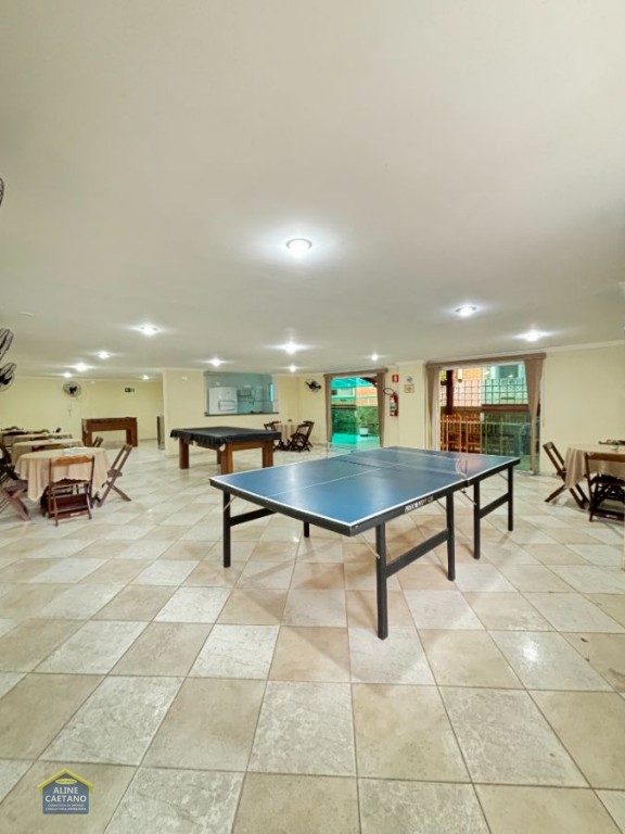 Prédio com churrasqueira coletiva, salão de jogos, salão de festas, espaço fitness.