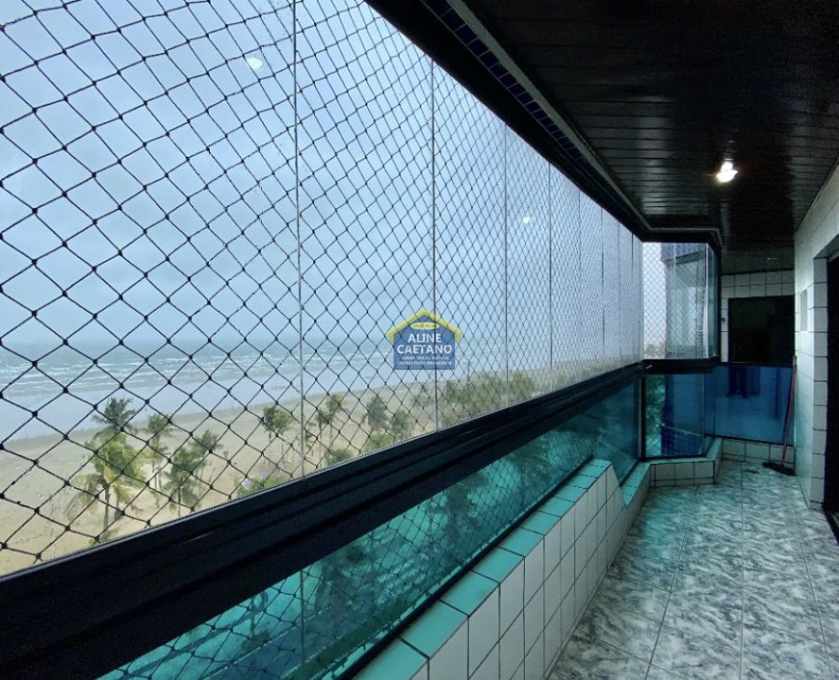 Amplo apartamento frente para o mar no Canto do Forte, sacada com churrasqueira a carvão e dependência de empregada.