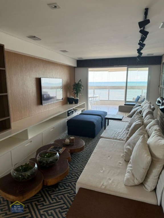 Lindo apartamento em Praia Grande! Localizado no Bairro Canto do Forte, contendo 213 m² área útil muito bem distribuídos por 04 dormitórios, sendo 02 suítes, sala com sacada gourmet, cozinha, área de serviço, dependência de empregada, 01 banheiro social, 03 vagas de garagem mobiliado. O empreendimento possui salão de jogos, salão de festas, salão de ginástica, espaço kids, piscina, quadra poliesportiva, portão eletrônico, elevador, churrasqueira, armários de praia e interfone!
