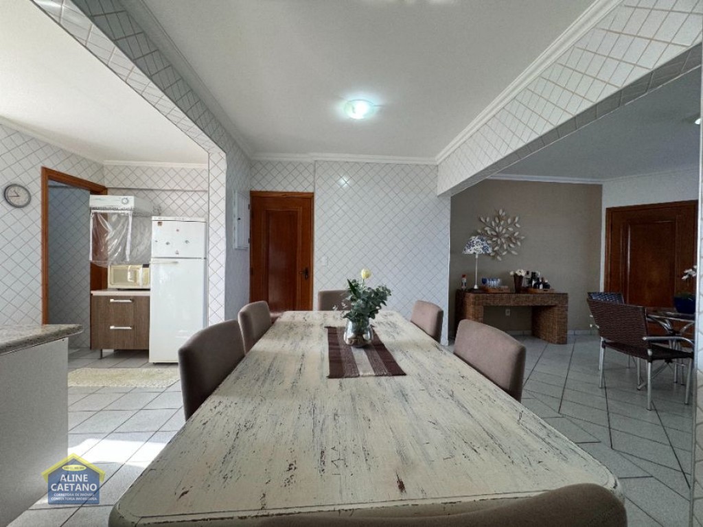 Com 3 dormitórios sendo 3 suítes, frente mar, ampla sacada, 2 vagas de garagem.