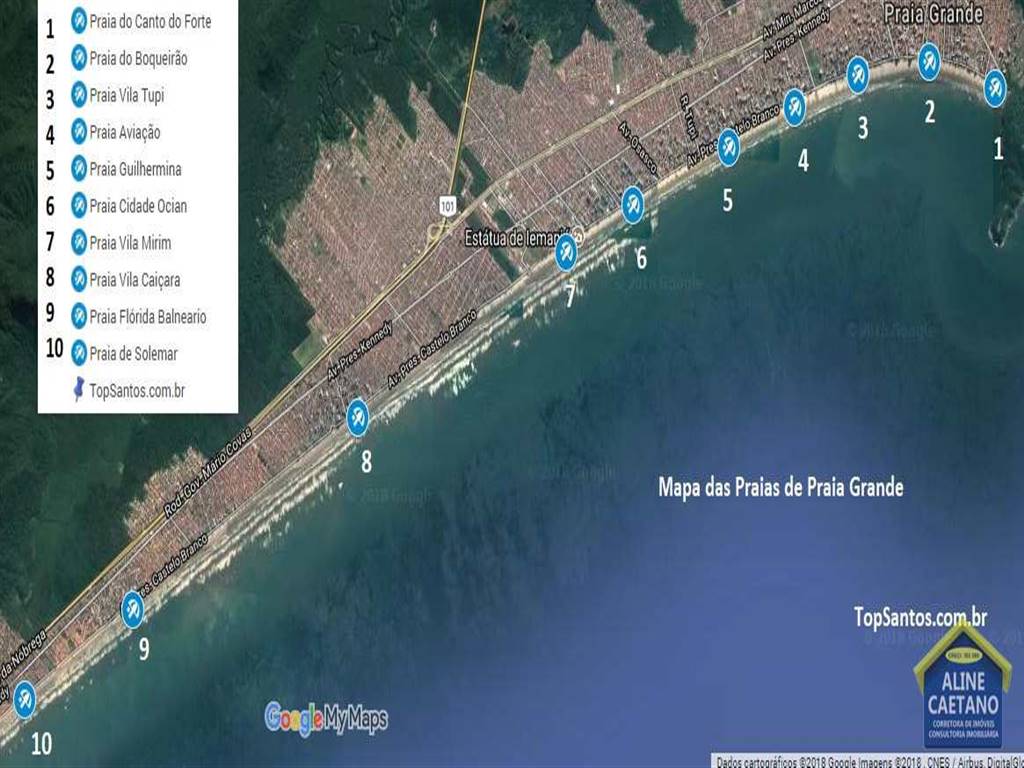 Aviação, Forte, Guilhermina, Boqueirão, Tupi, Ocian, Mirim, Maracanã, Caiçara, Flórida, Ocean