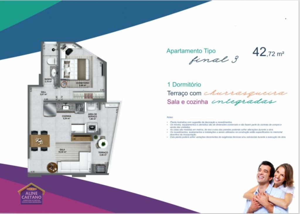 Com 1 dormitório, sala, cozinha, wc social, área de serviço, 1 vaga de garagem.
