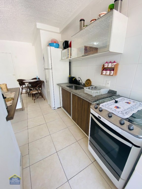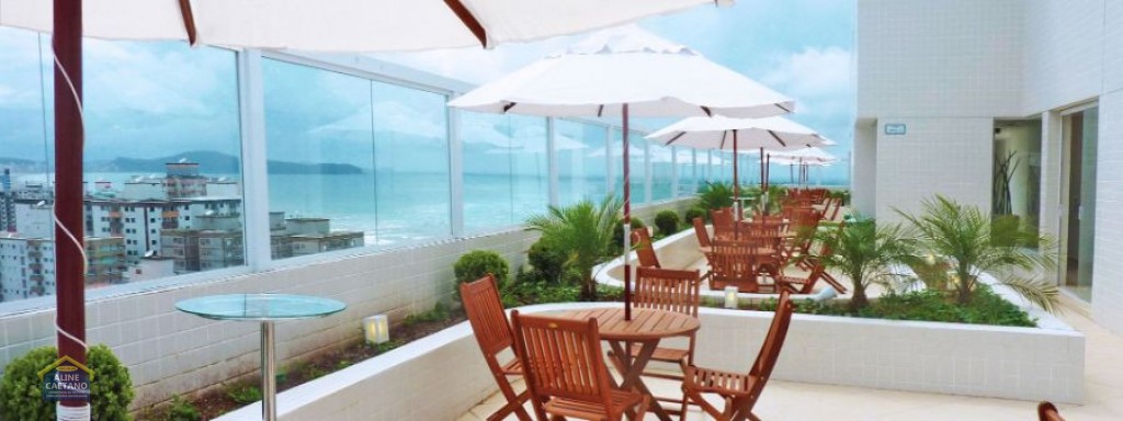 Com 2 dormitórios sendo 1 suíte, sala com varanda vista mar, 1 vaga de garagem.