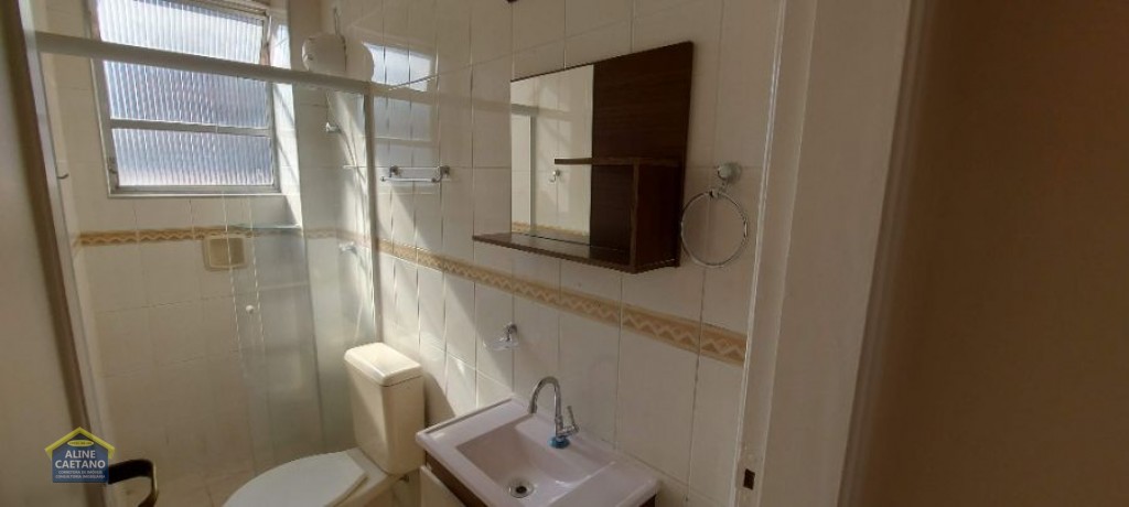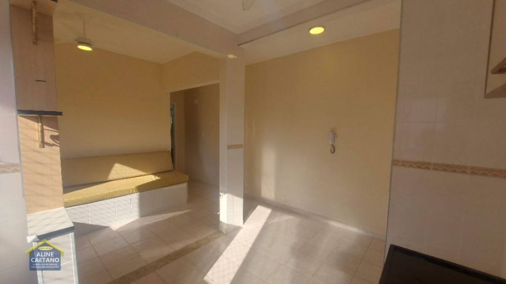 Cozinha com azulejo até o teto, gabinete e armário novos, conta com área de serviço e janela para a rua, que garante total ventilação. A sala é conjugada à cozinha e cria um espaço bem claro e agradável, com uma ampla janela em alumínio e tela.
