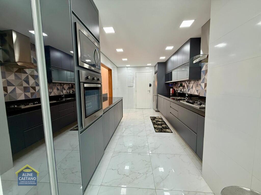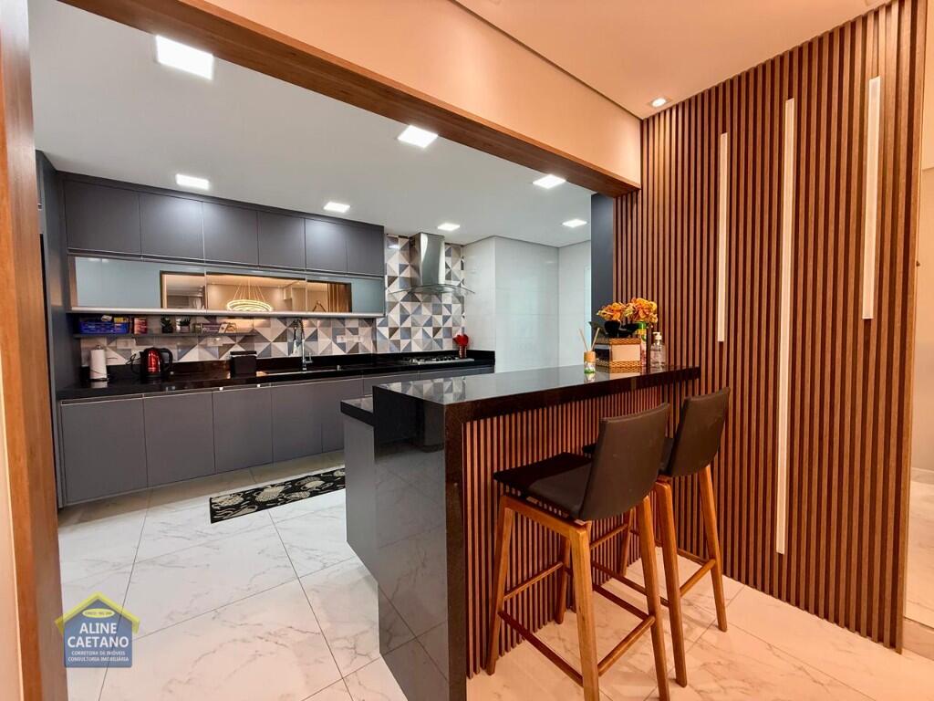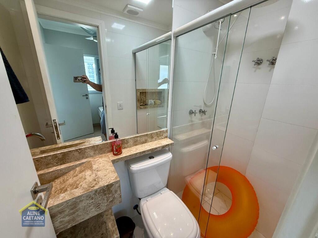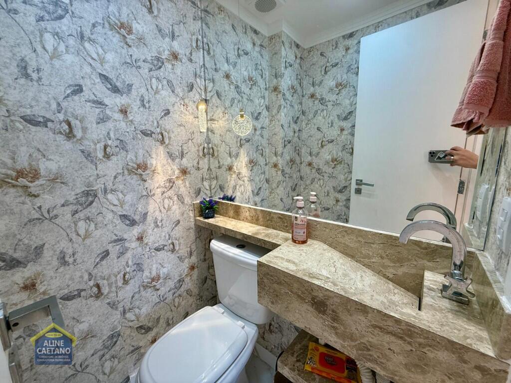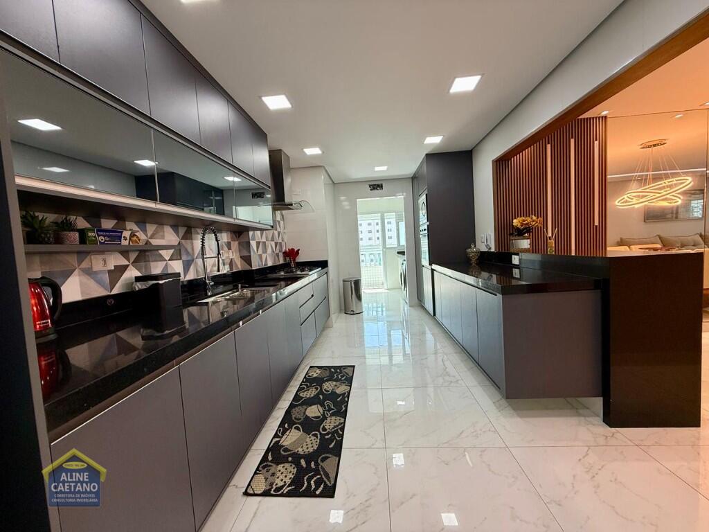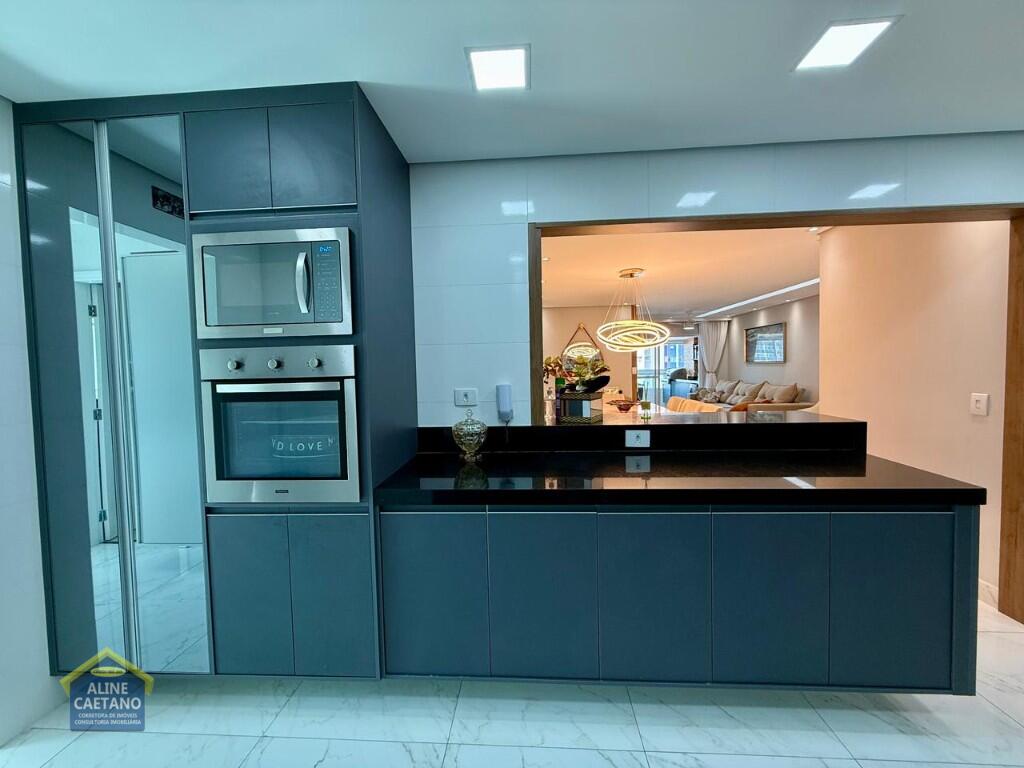 Com 3 dormitórios sendo 3 suítes, 5 banheiros, sala, cozinha, mobiliado, varanda gourmet, 2 vagas de garagem demarcadas, área útil de 141m², Portaria