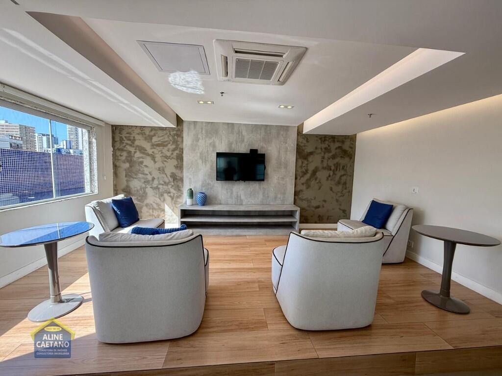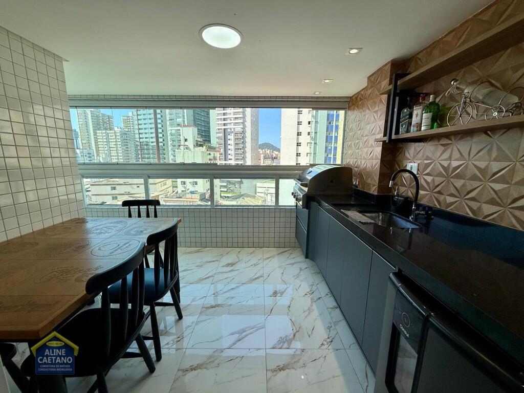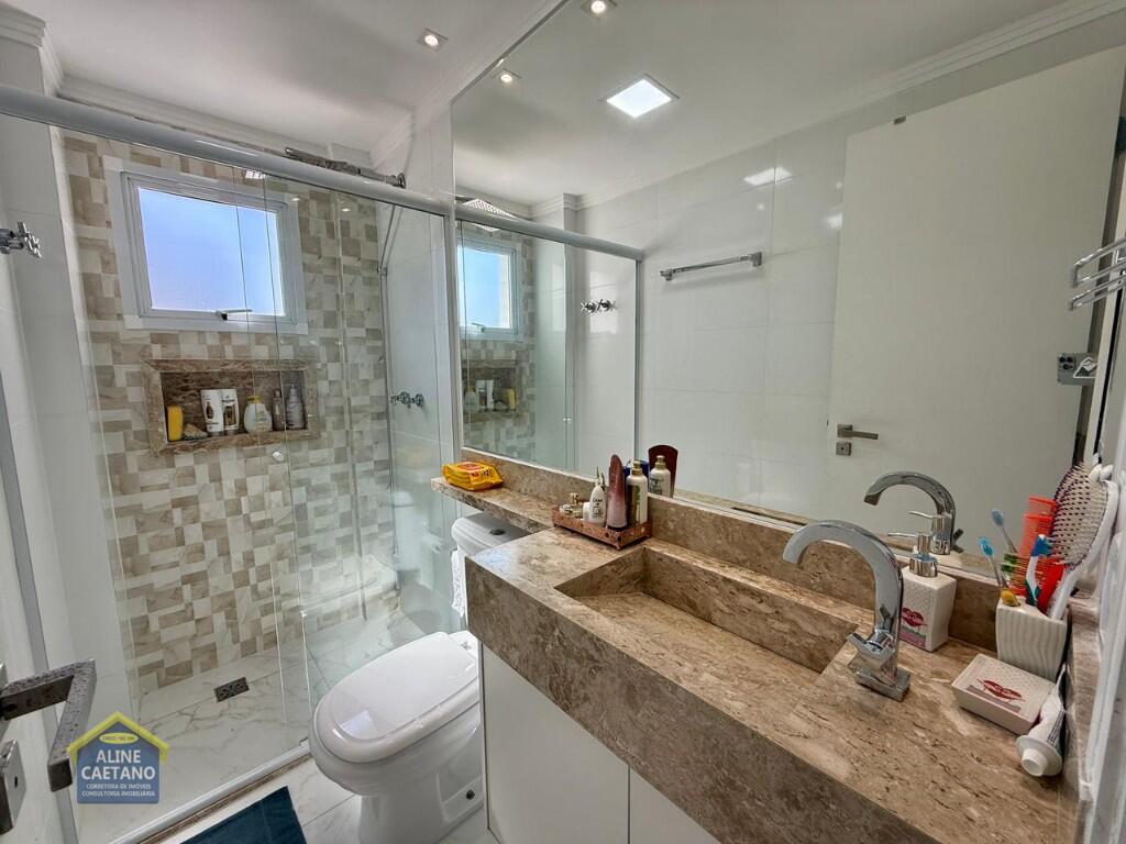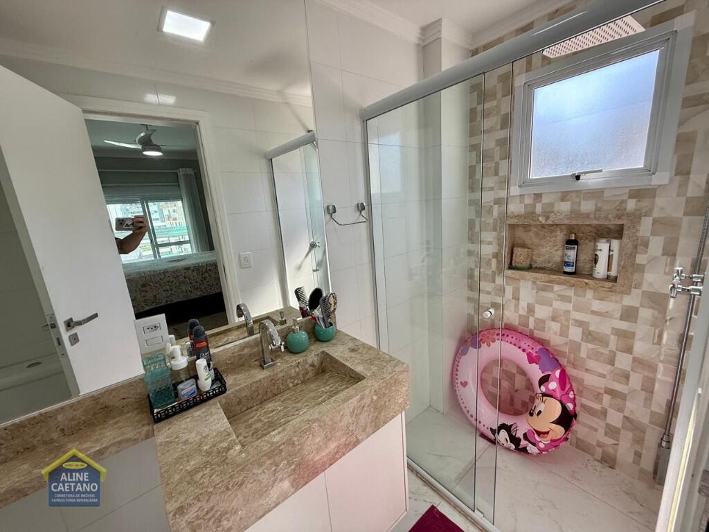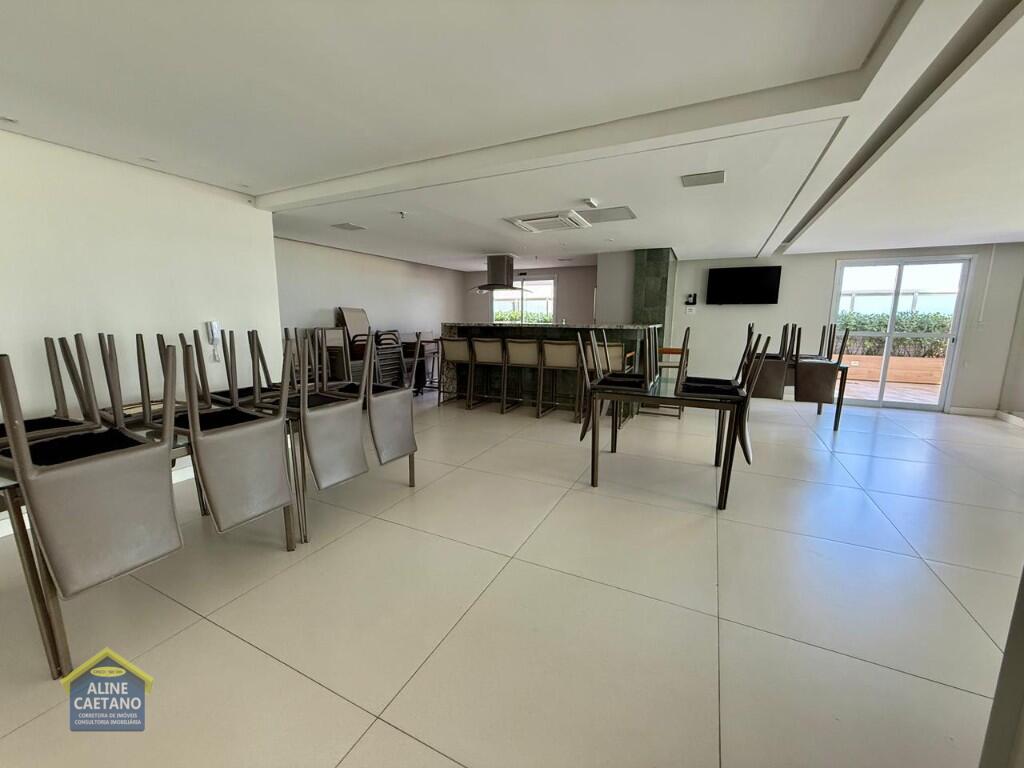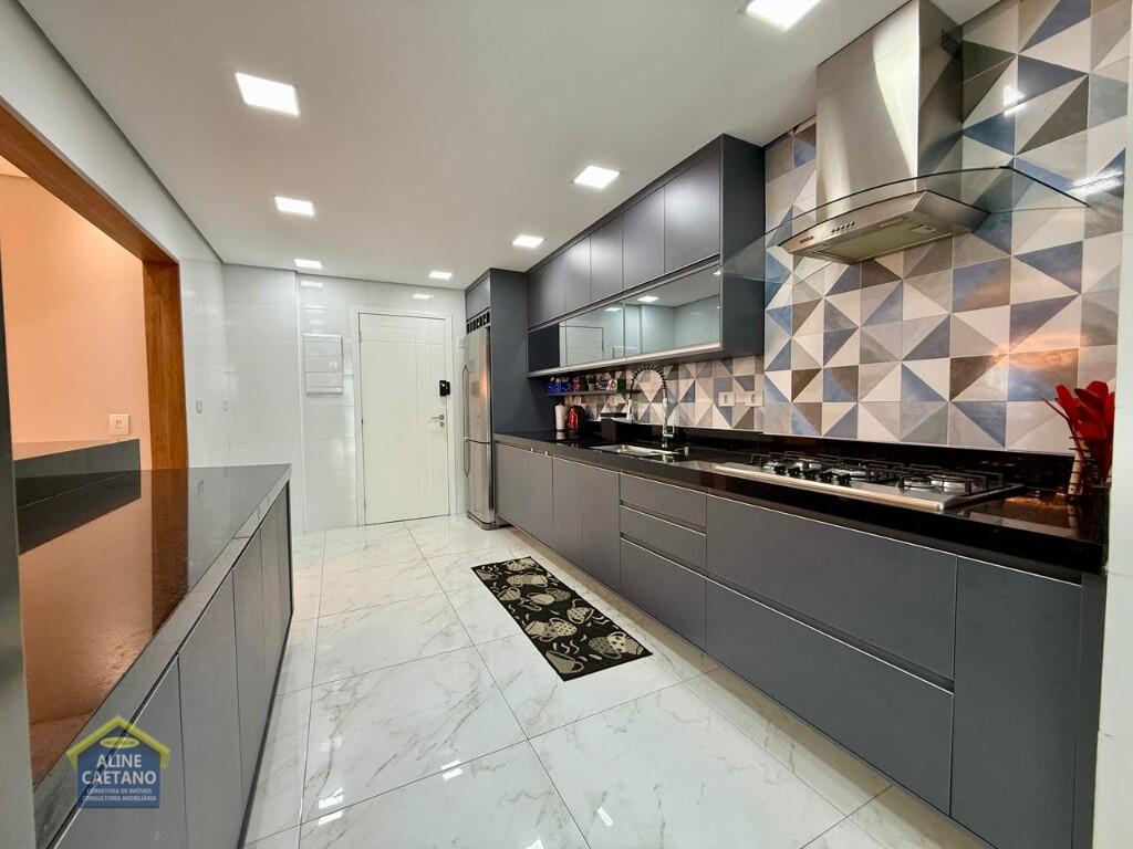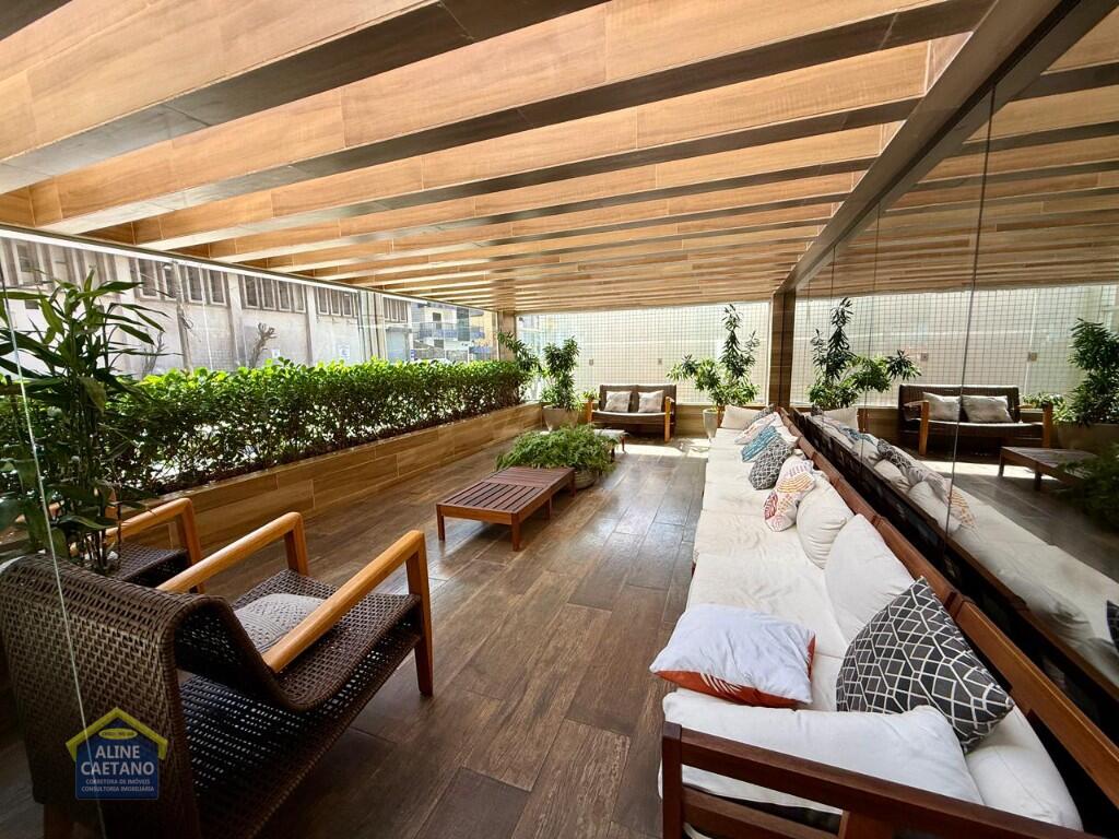 Com 3 dormitórios sendo 3 suítes, 5 banheiros, sala, cozinha, mobiliado, varanda gourmet, 2 vagas de garagem demarcadas, área útil de 141m², Portaria