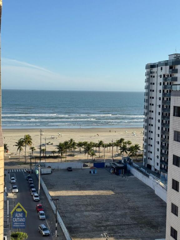 Com 2 dormitórios sendo 1 suíte, frente rua, varanda com vista mar, andar alto, 1 vaga e garagem.