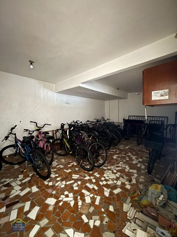 Prédio com salão de jogos, piscina, elevador e armários individuais.