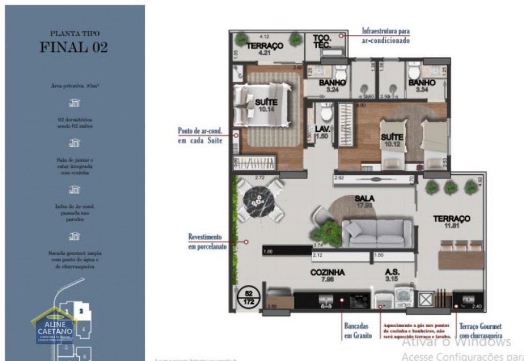 Área Útil85,00m²