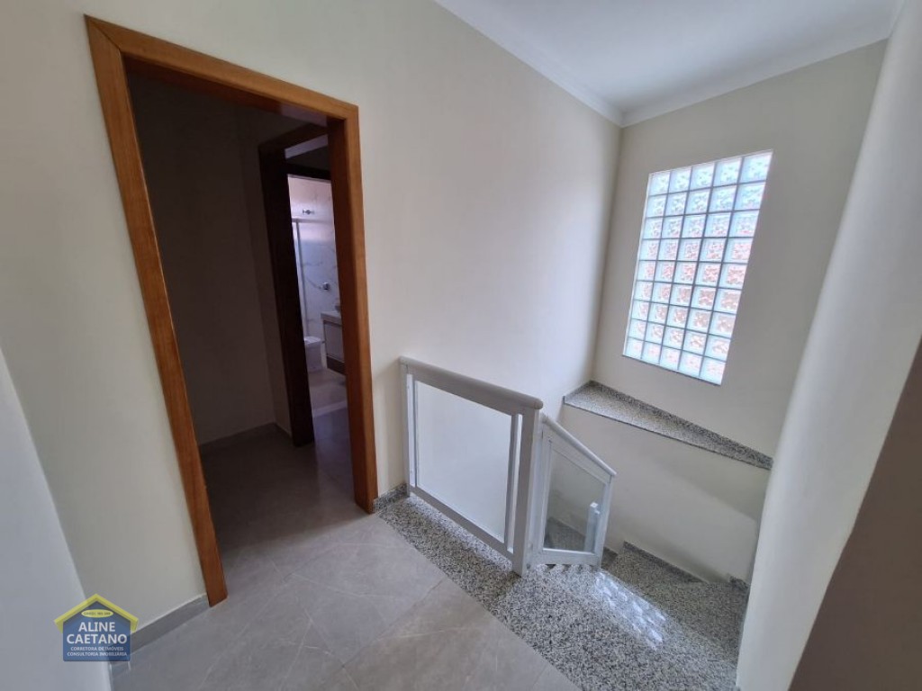 Com 4 suítes ( sendo 3 suítes na parte de cima + 1 suíte na parte de baixo)+ 1 wc social interno + 1 wc social externo, 3 vagas de garagem.